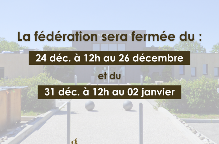 La Fédération sera fermée : du 24 décembre à 12h au 26 décembre inclus et du 31 décembre à 12h…