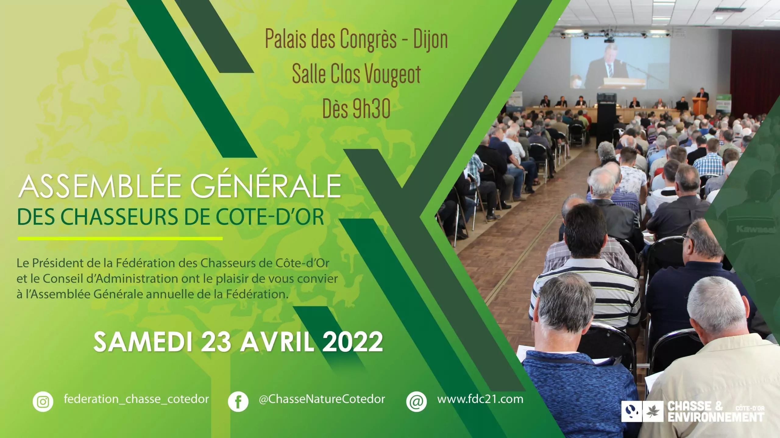 Samedi 23 avril 2022, à 9 heures 30 – Salle Clos Vougeot au Palais des Congrès – 3 Boulevard de Champagne – à DIJON.