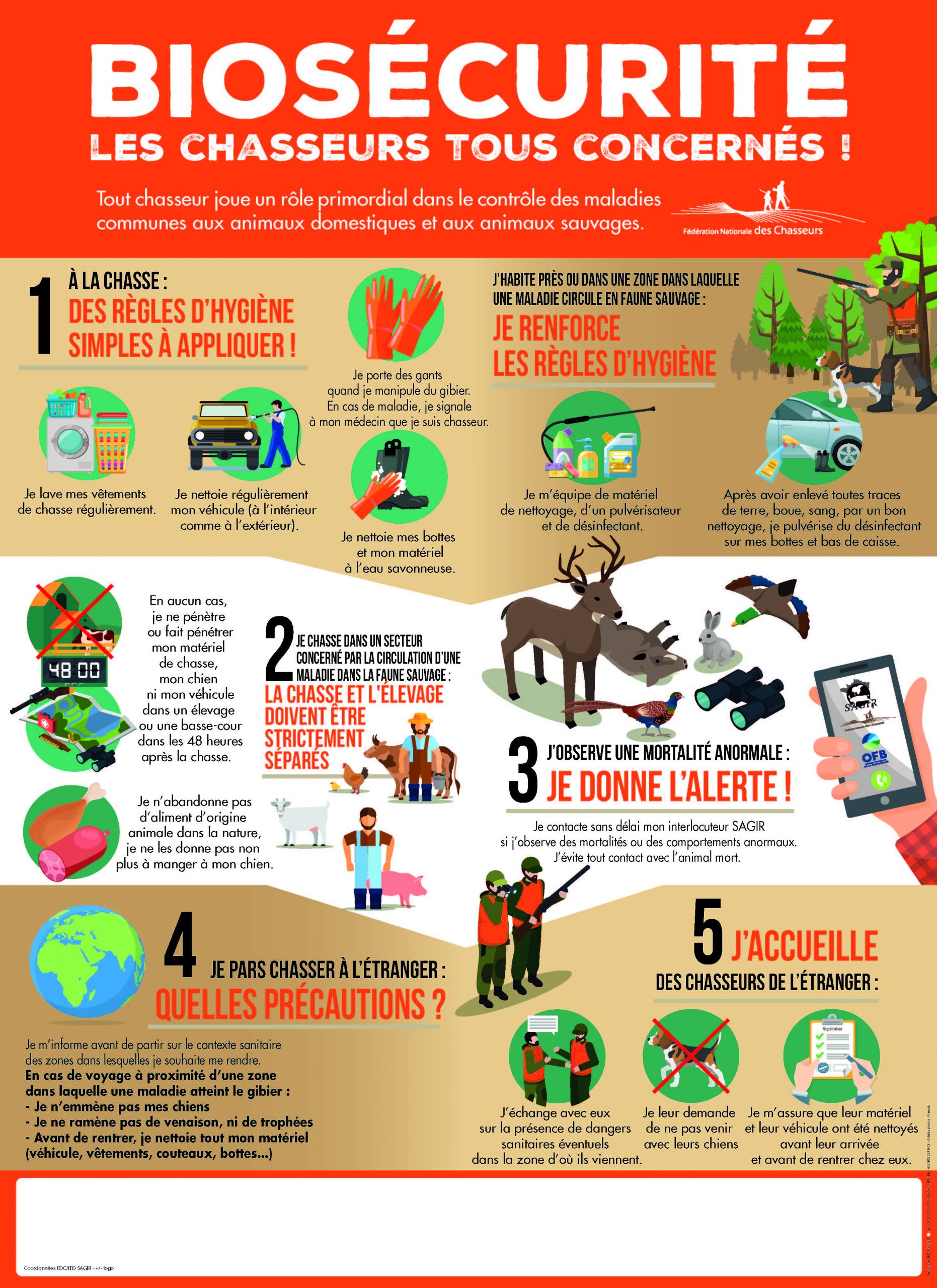 La chasse joue un rôle essentiel dans la surveillance sanitaire de la faune sauvage. Pour protéger nos territoires, nos élevages et nos chiens, quelques règles d’hygiène simples permettent de limiter la propagation des maladies.