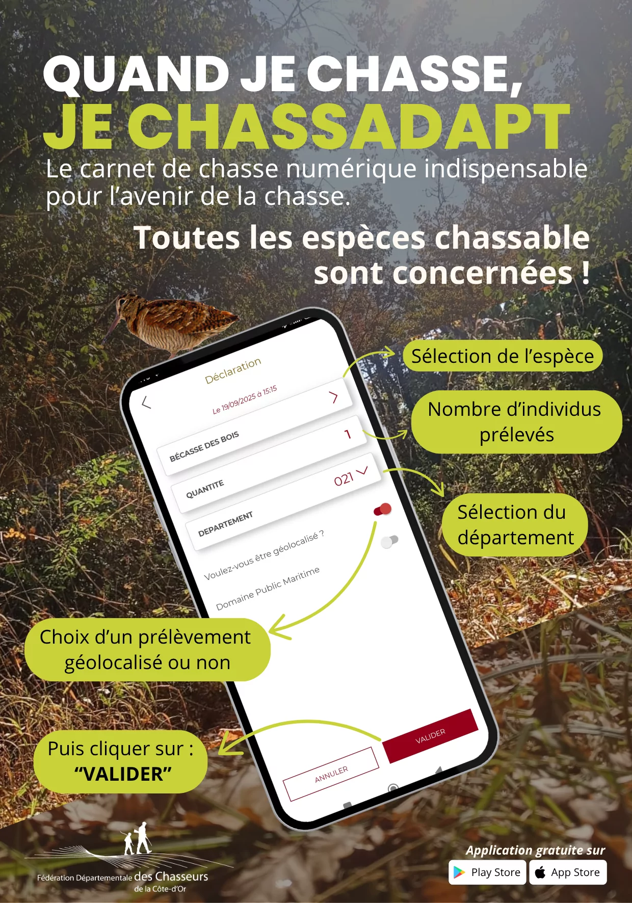 Enregistrer vos actions de chasse n’a jamais été aussi facile ! Avec son interface intuitive, ChassAdapt vous permet de suivre vos sorties en quelques clics. Et pour vous aider à prendre en main l’application, notre chaîne YouTube propose des tutoriels clairs et détaillés.