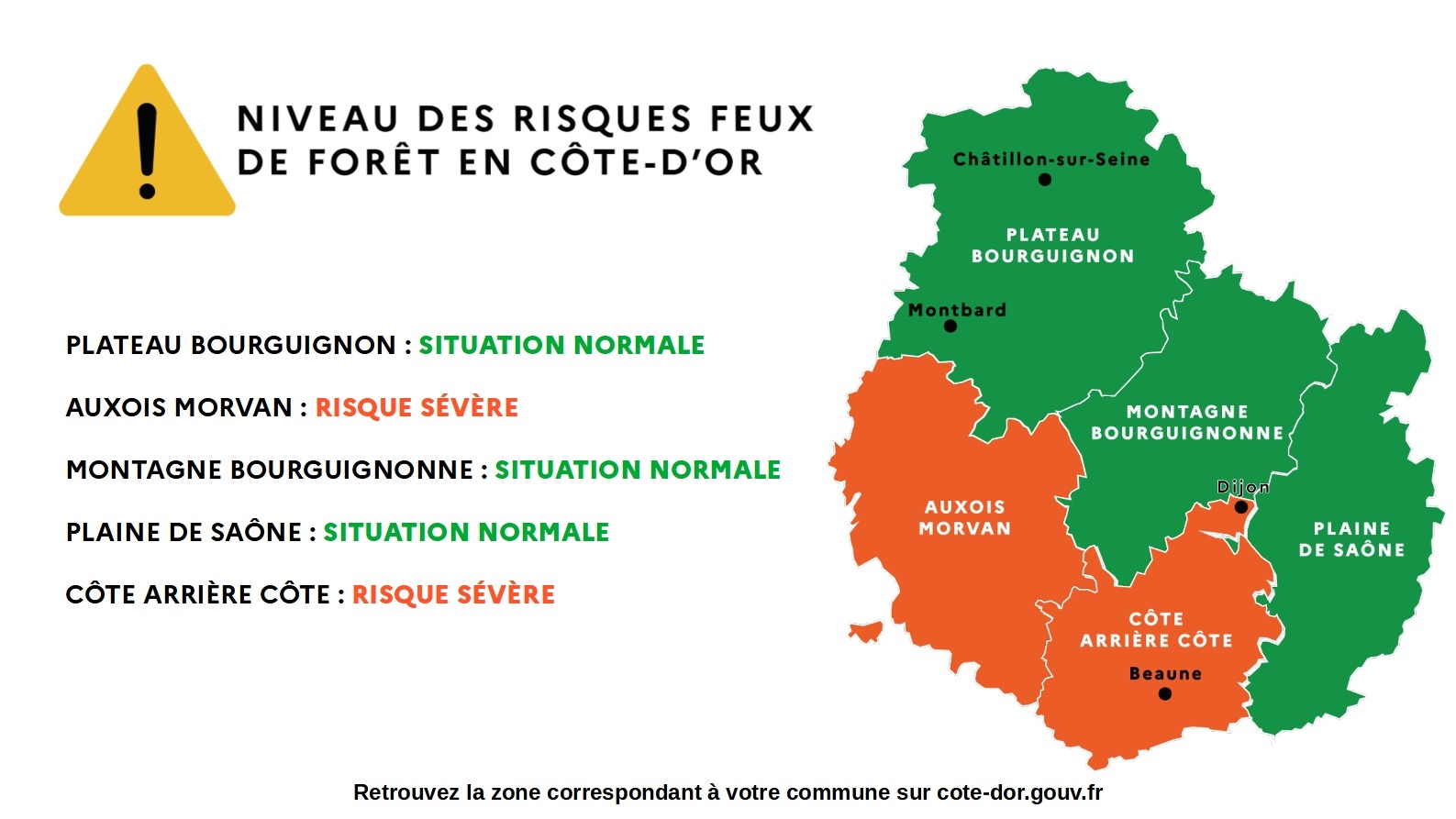 passer les zones Auxois Morvan et Côte Arrière Côte en risque sévère