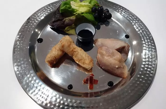 Nems à l’effilochée de cailles, foie gras mi-cuit & Cassissines
