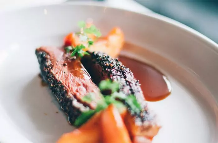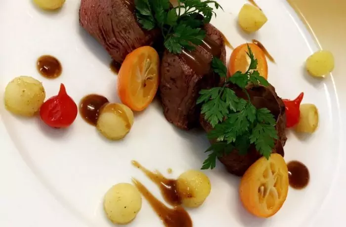 Noisettes de chevreuil sauce poivrade et son caviar de pommes