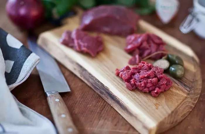 Tartare de filet de jeune cervidé à la moutarde à l’ancienne